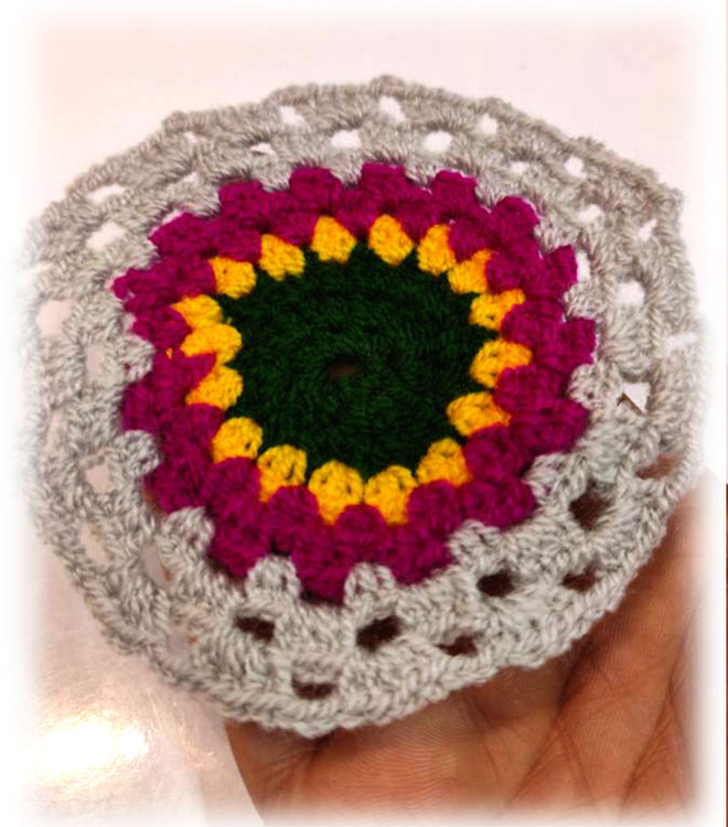 زیرلیوانی دستبافت طرح هندسی، زیر لیوانی قلاببافی، زیر استکانی دایرهای، ست زیر لیوانی رنگی